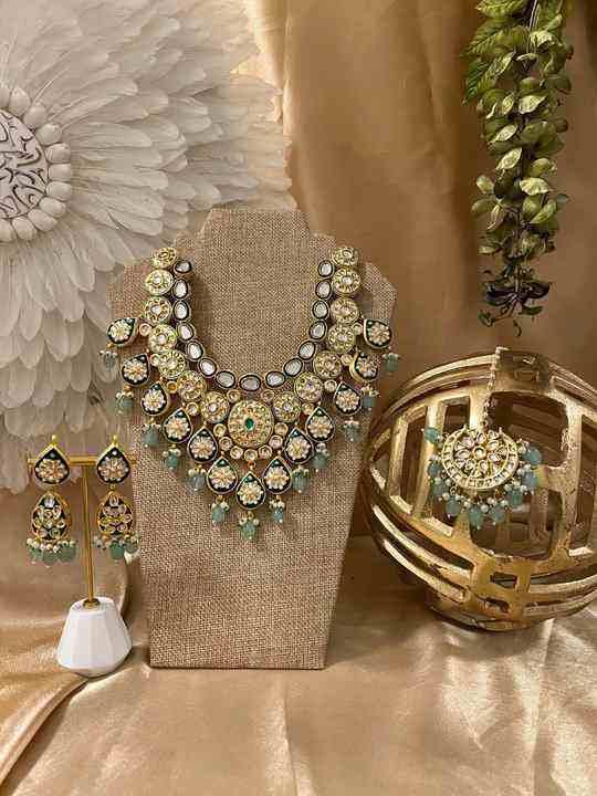 Beautiful Wedding Necklace With Maang Tikka Natural Inspired fusion Necklace Jewelry Set With Earrings Jewelry Necklace Set