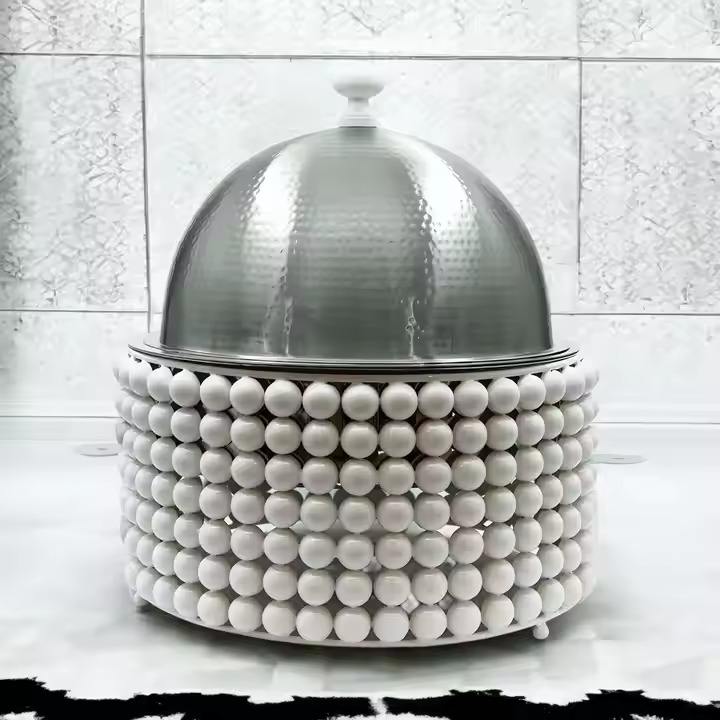 Beautiful Classic White Bead Handle Casserole Hammered Silver Lid Premium Stainless Steel Serving Dish for Home Outdoor