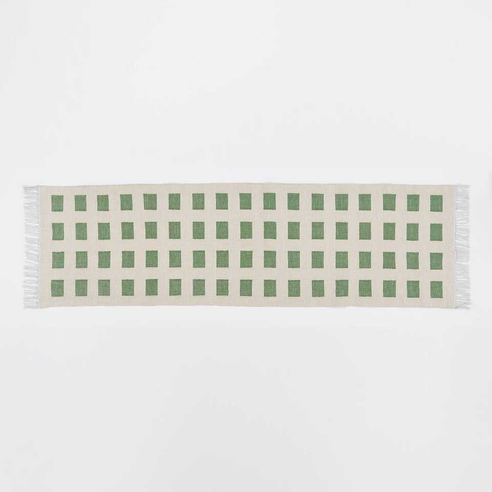 Beautiful White Color Carpets With Green Block Patterned Carpets Hand Block Print Pattern Dhurries for Home Living Room Decor
