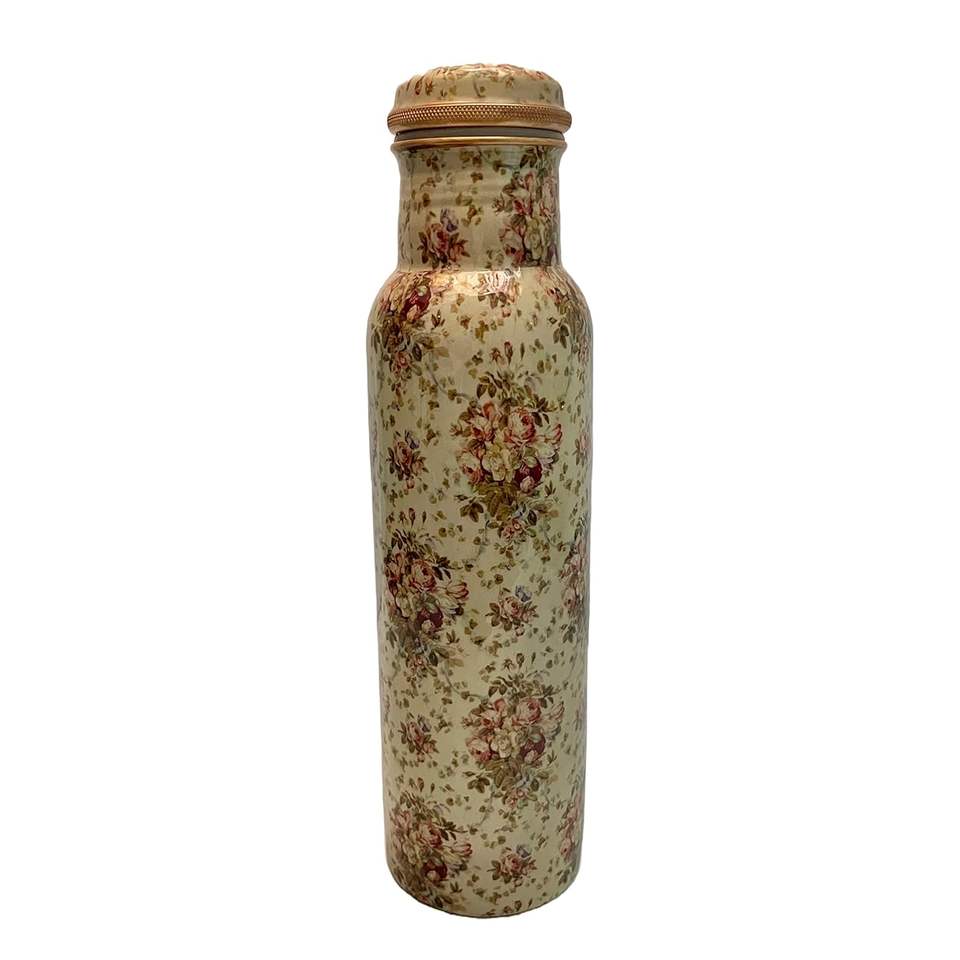 Beautiful White Floral Printed Copper Water Bottle Eco-Friendly Designer Metal Bottle Lid for Travel Outdoor Use Wholesale Price