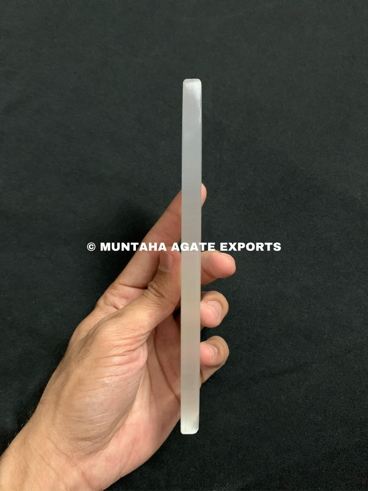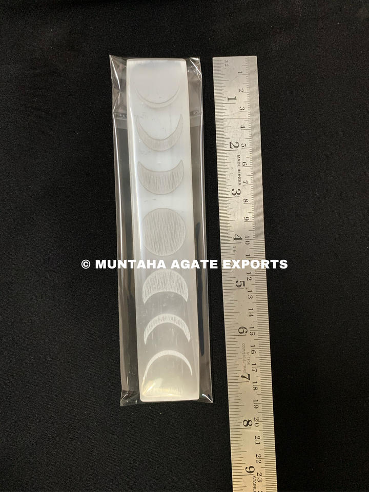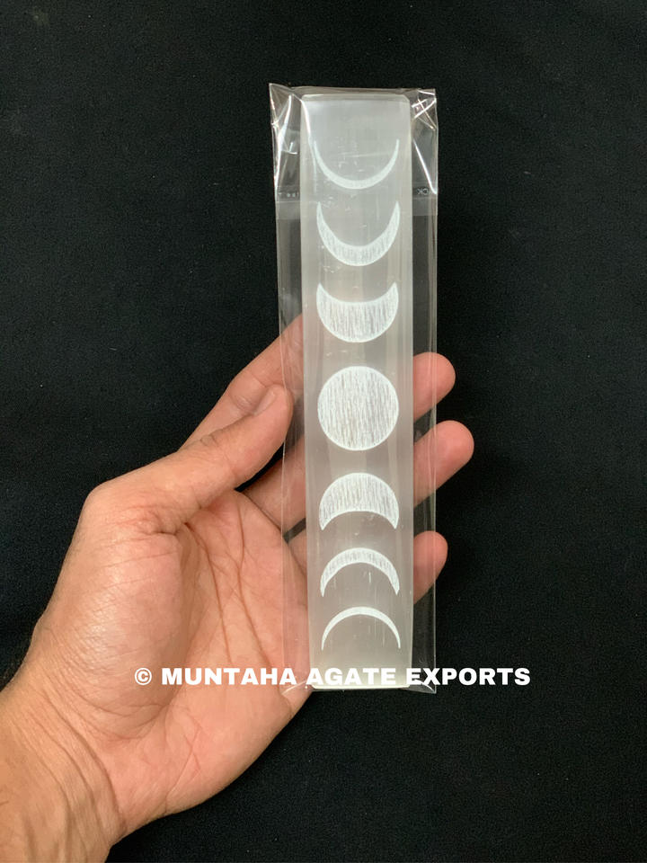 Beautiful White Selenite Moon Phase Engraved Rectangle Bar Premium Quality Crystal Gift From Muntaha Agate Exports Wholesale
