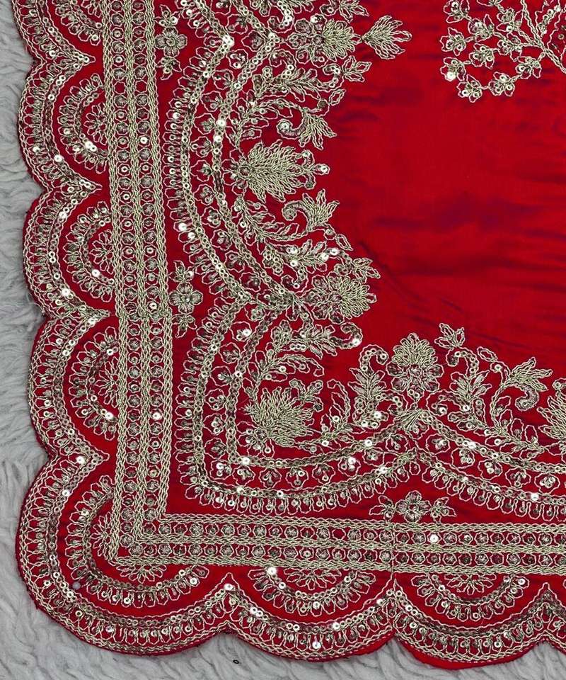 Beautiful White and Red Saree for Women with Fancy Embroidery and Stunning Wedding Party Look Saree / Sari / Shari