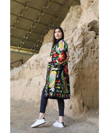 Beautiful Women Long Jacket Suzani Embroidered Jacket Ladies Light Weight Cotton Winter Coat Beach Robe Cover up