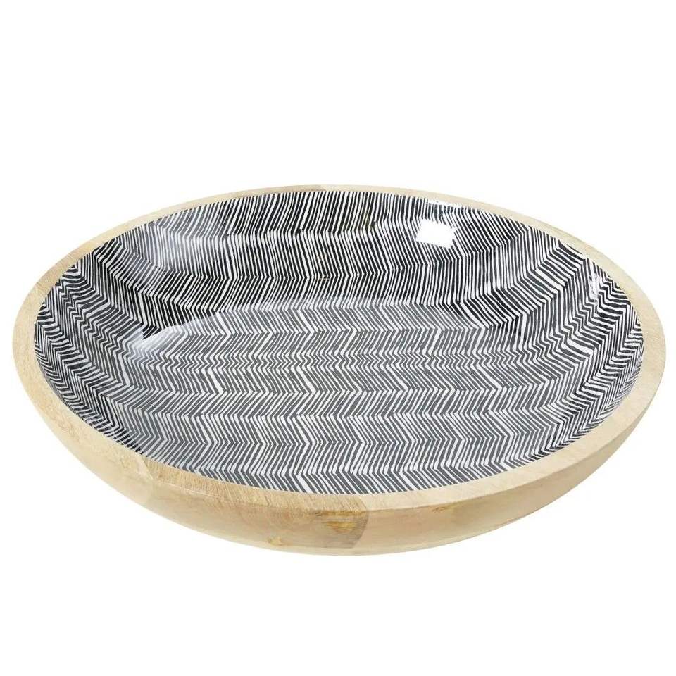 Beautiful Wooden Bowl With Enamel Design Decorative Fruit Holder For Countertop Display Elegant Dining Serving Accent Home Decor