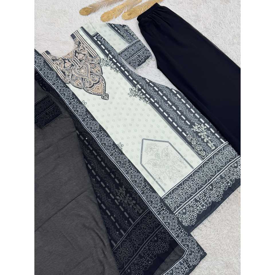Beautiful XL Suit Set with Digital Print and Real Mirror Handwork