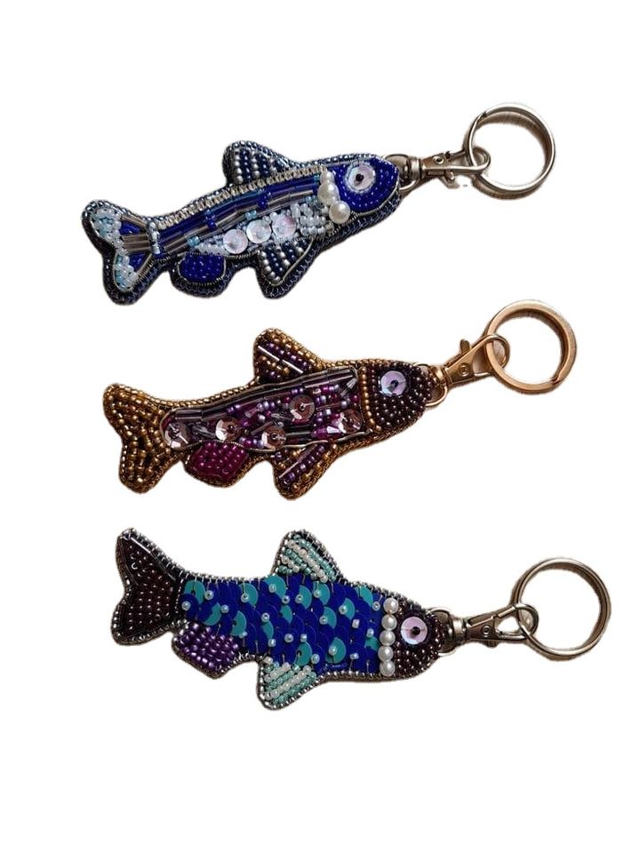Beautiful butterfly design blue and green coloured seed beaded embroidery keychain and handmade bag accessories from India
