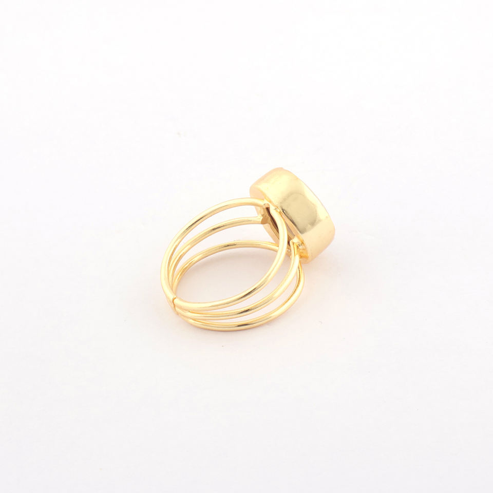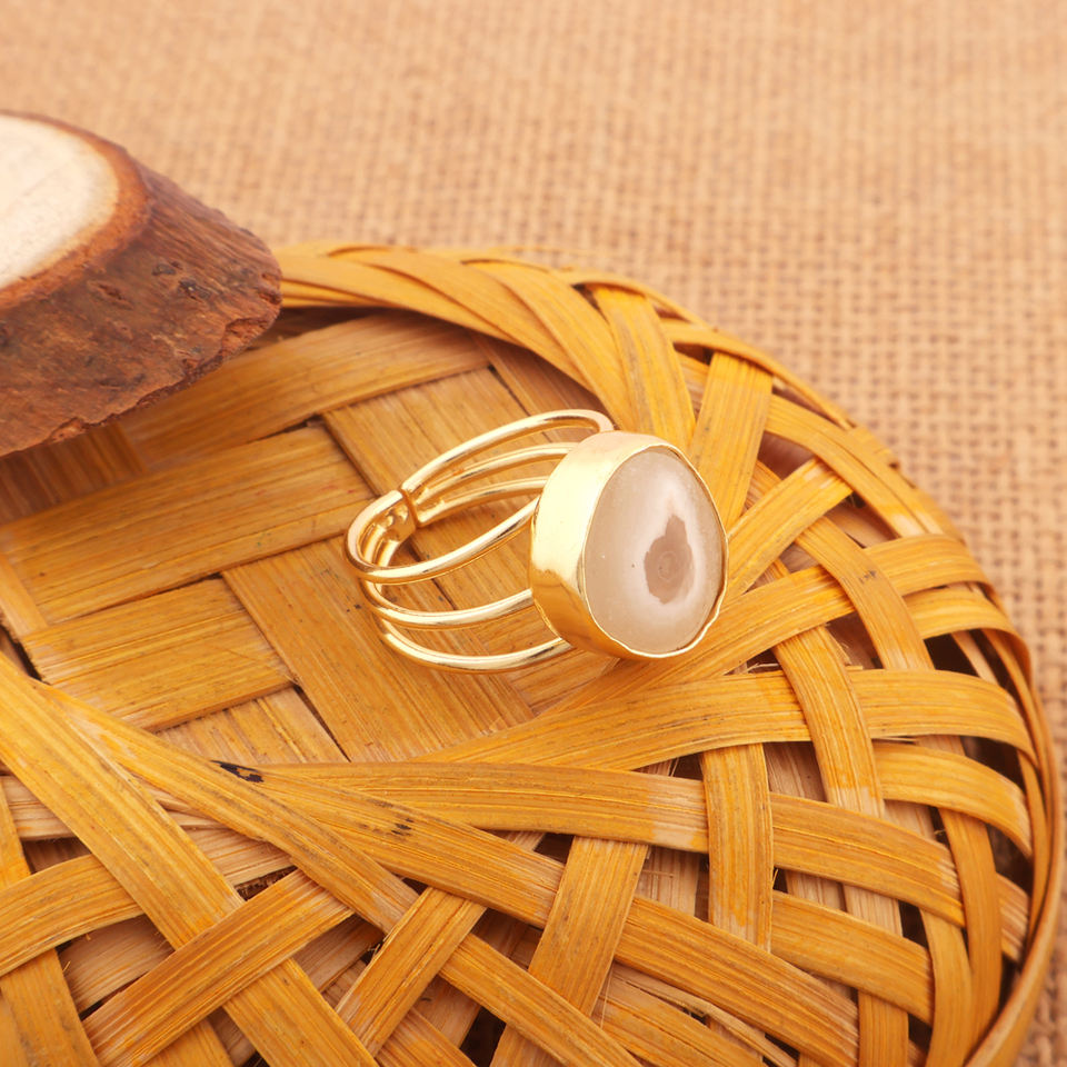 Beautiful Charms Natural White Solar Quartz Collet Setting Ring Brass Gold Plated Three Layer Band Adjustable Rings for Women's