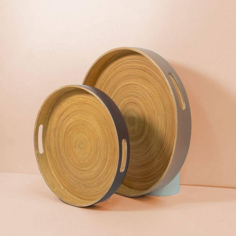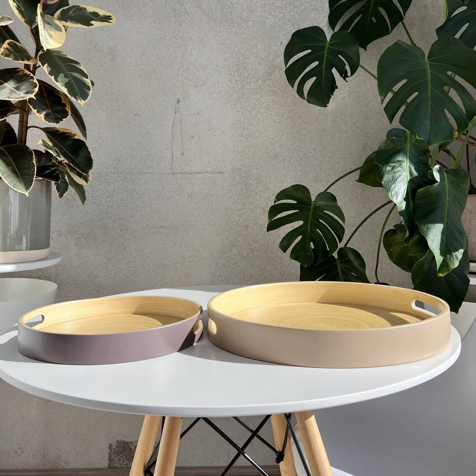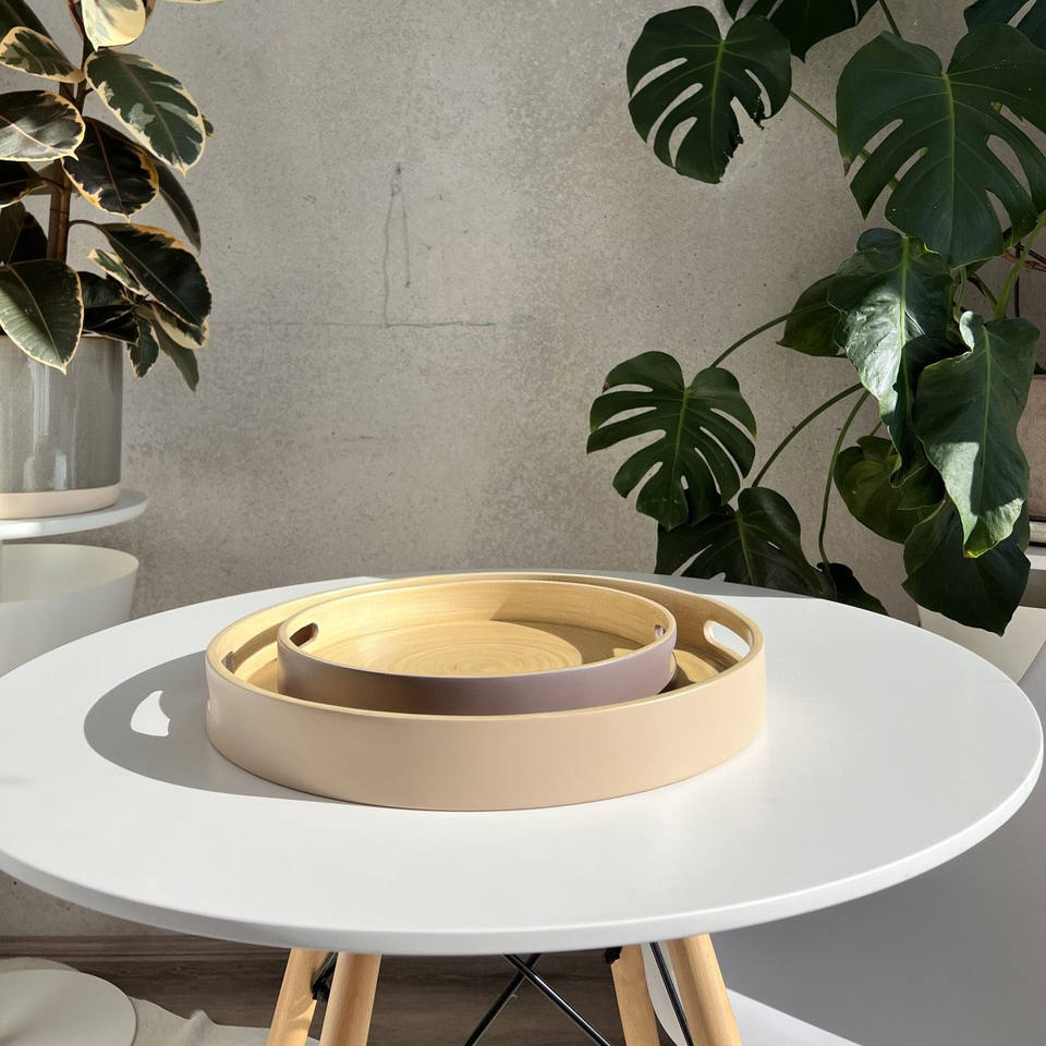 Beautiful fiber coiled tray homeware set cheap price spun bamboo lacquered bedside trays for bedroom decor