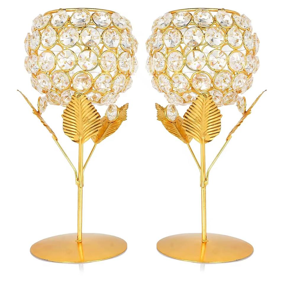 Beautiful luxurious metal & crystal candle holders fabulous polished finish reflects craftsmanship and attention to detail