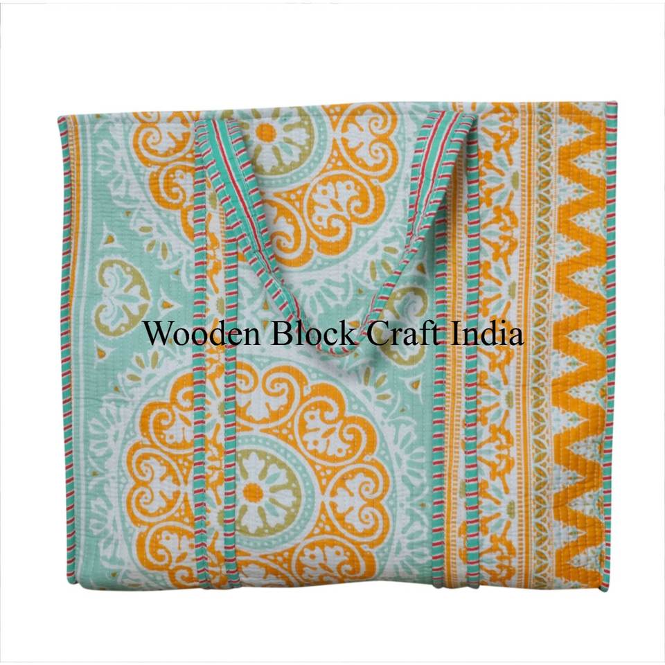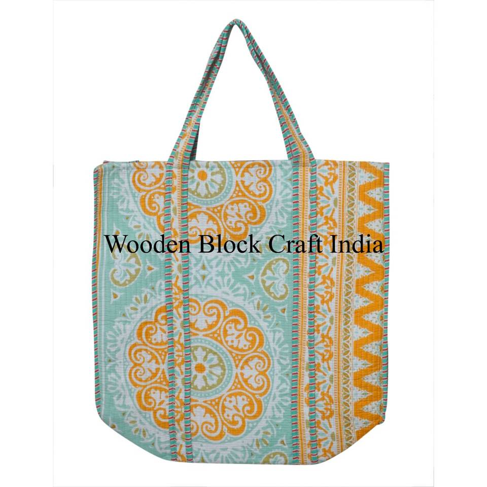 Beautiful motif print Custom made Handmade Quilted Cotton Tote Bag Lightweight & Reusable Ideal for office and gifting for women