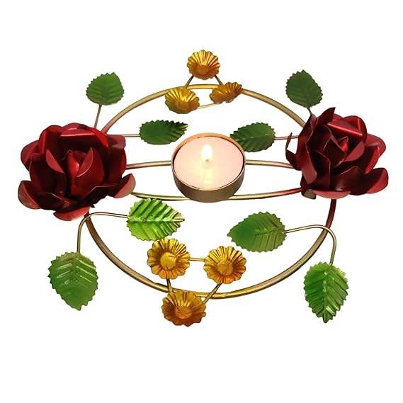 Beautiful rose textured metal tea light holder enhances candlelight, creating warm glowing ambiance that fills room beautifully