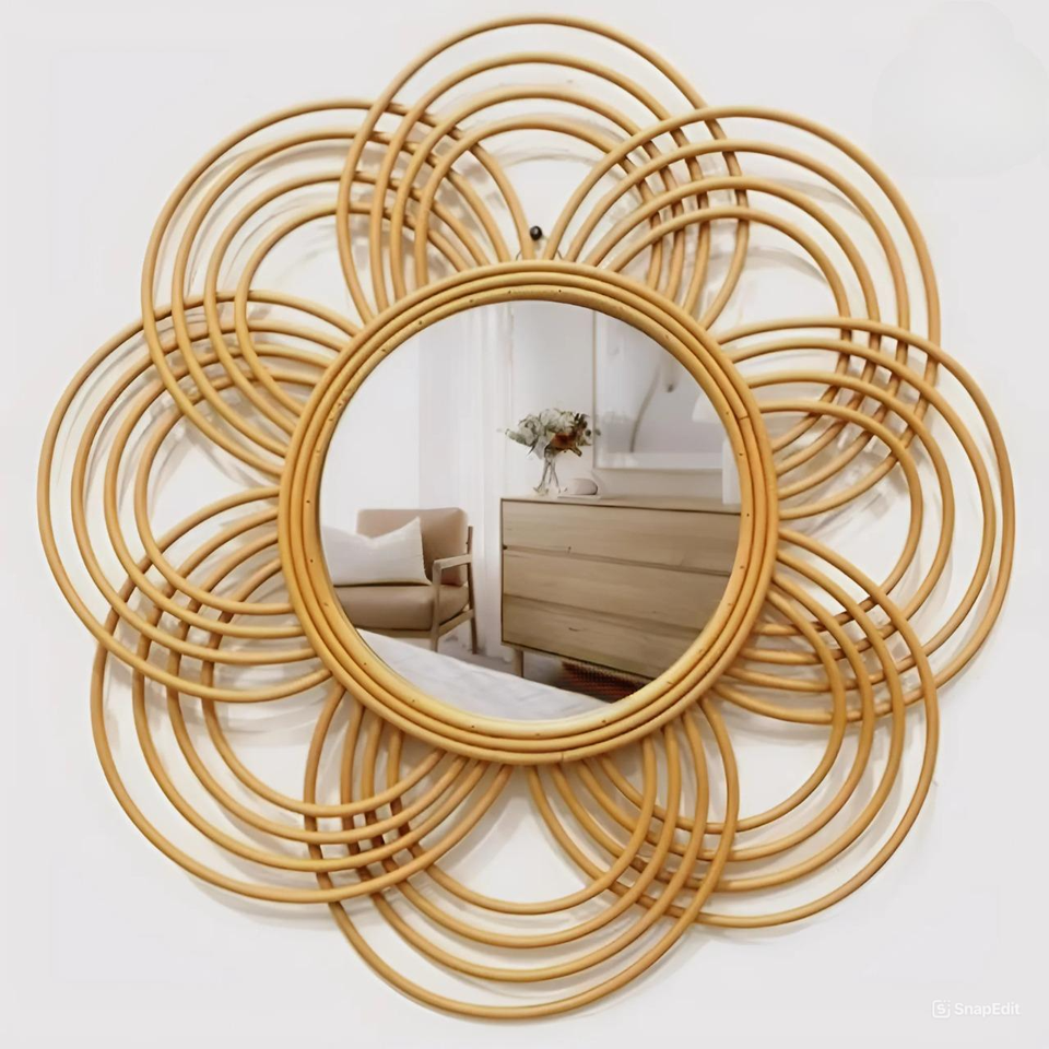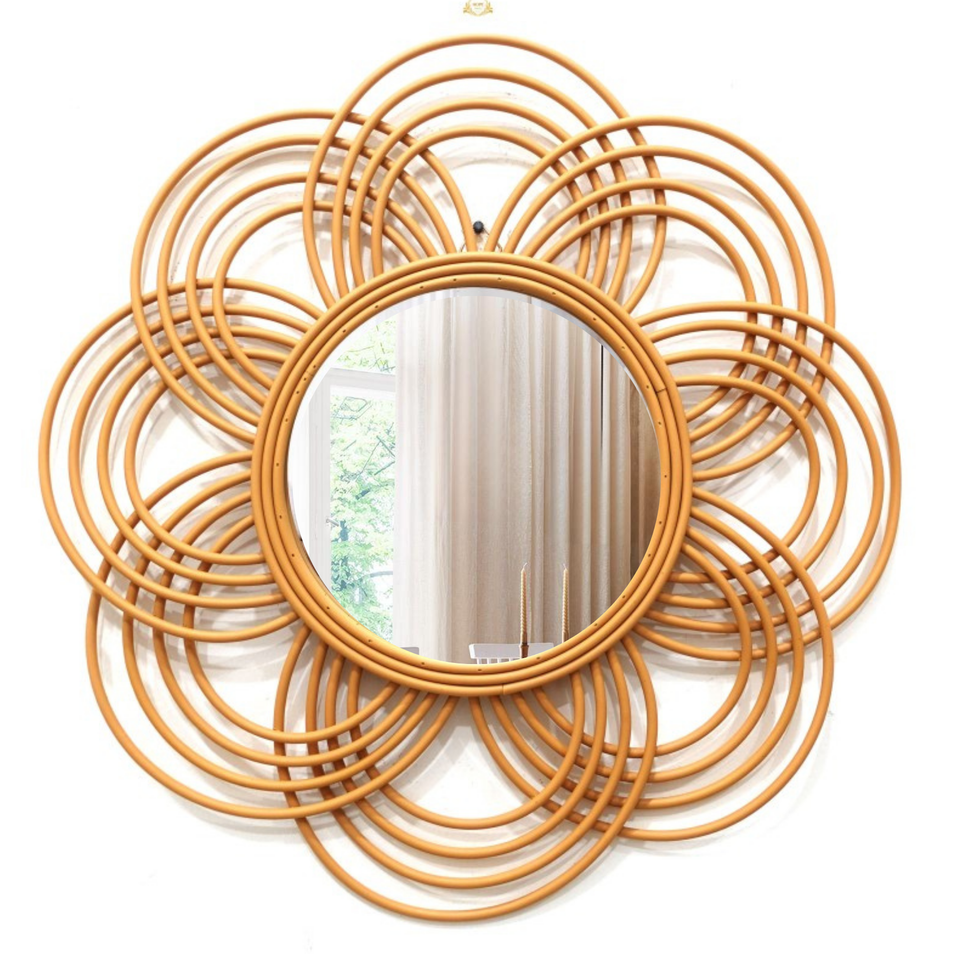 Modern Luxury Rattan Woven Mirror Unique Cane Frame Glass Home Decor for Living Room Bedroom Bathroom Wall for Wedding
