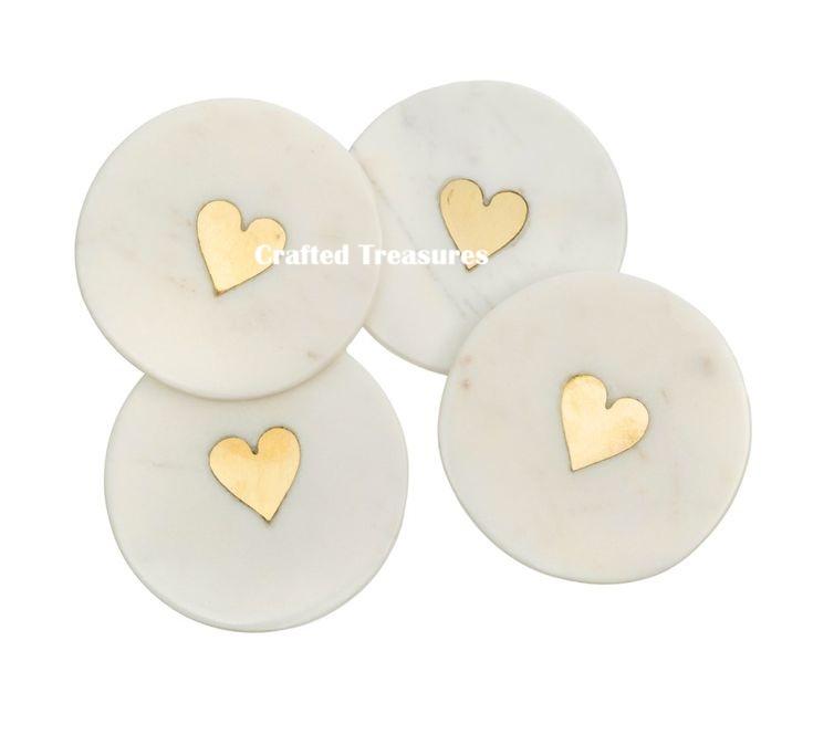 Beautifully Bar Pads New Home Trendy Curved Slate Glass Top Heart-Shaped Marble Coasters Set High Brass Metal Tables Fancy