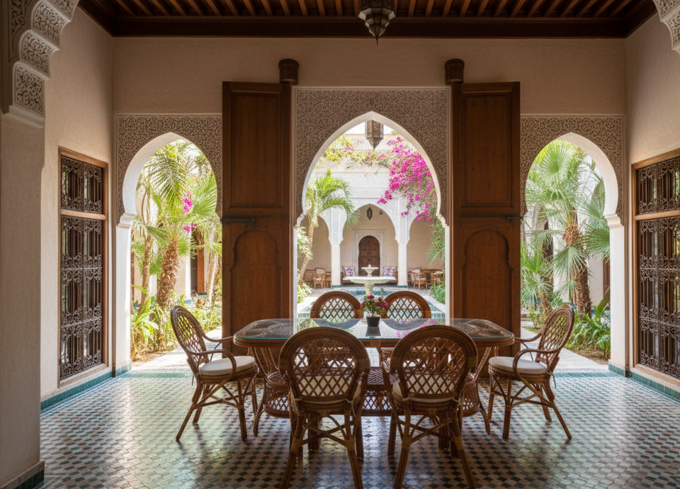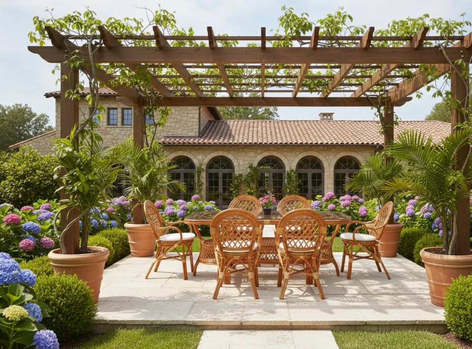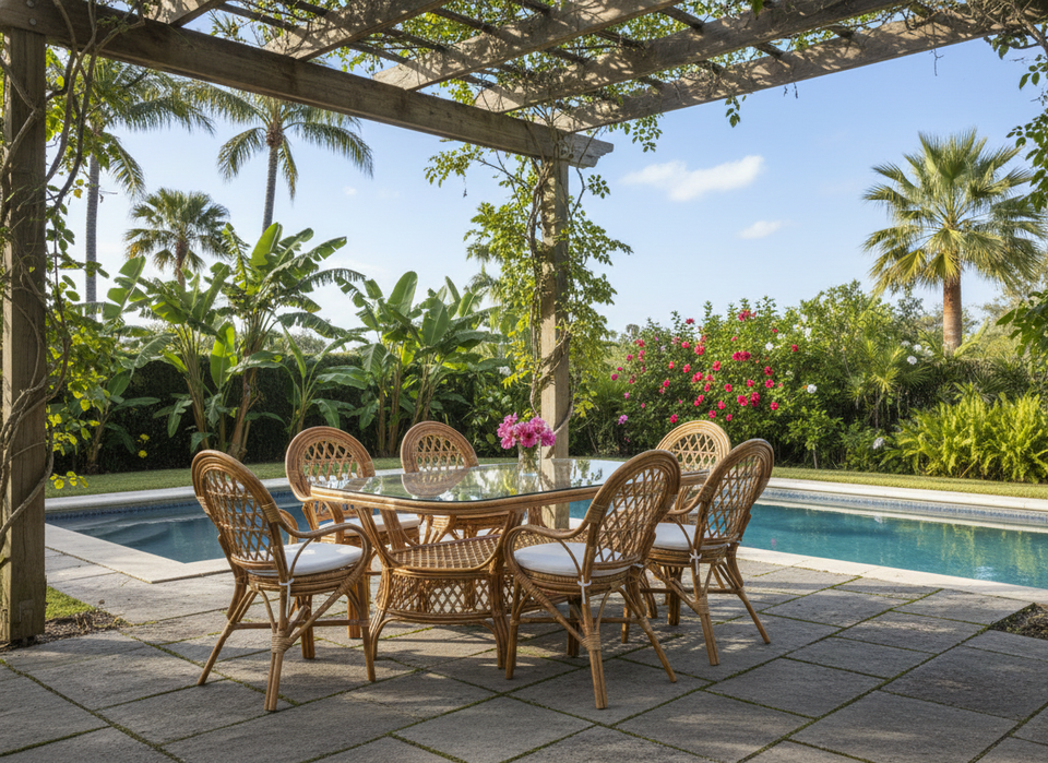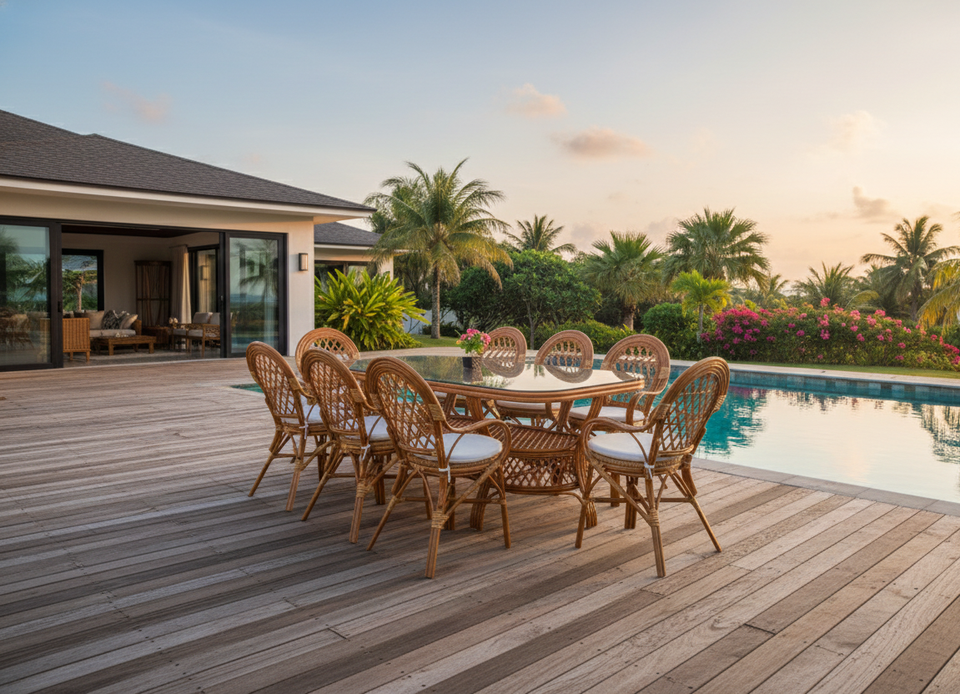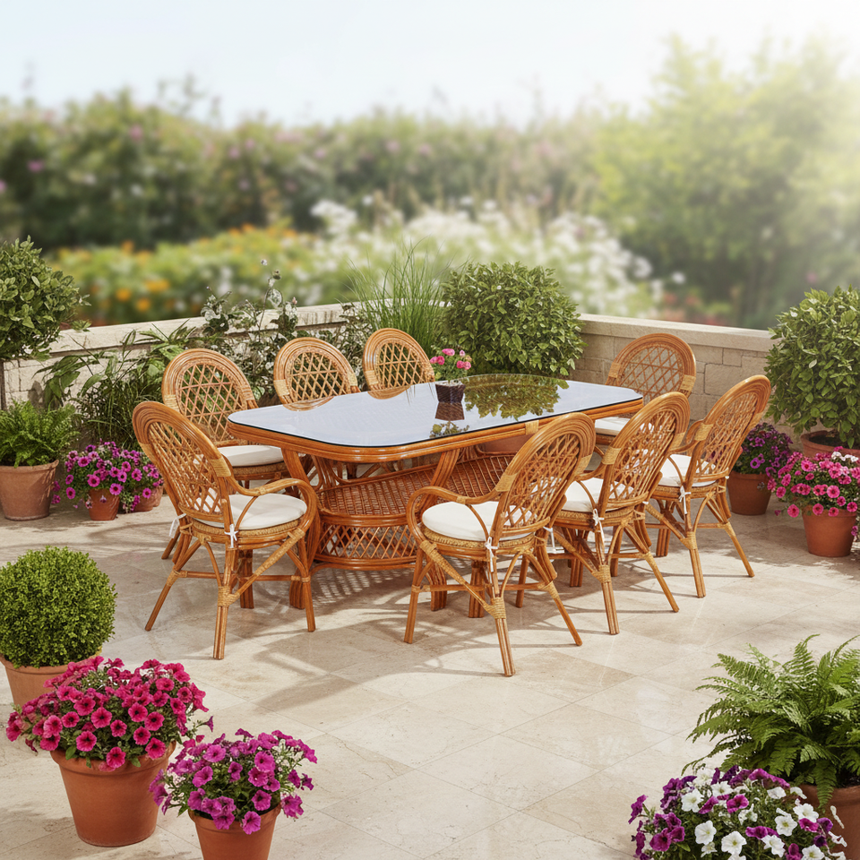 Beautifully Crafted Comfortable Antique Asian Classic Rattan Frame Dining Set Long Table Home Furniture for Indonesia Home Hotel