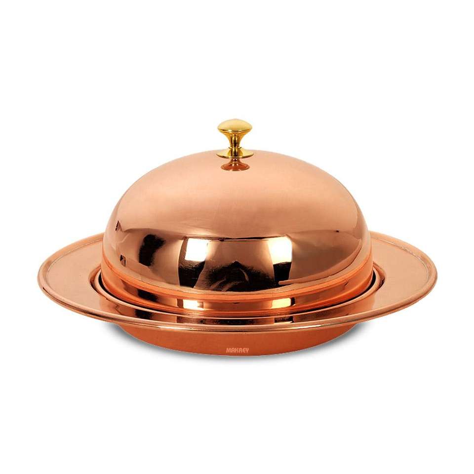 Beautifully Crafted Eco-Friendly Copper Oval Serving Dish Golden Handles Lid Customizable Size for Traditional Elegant Dining