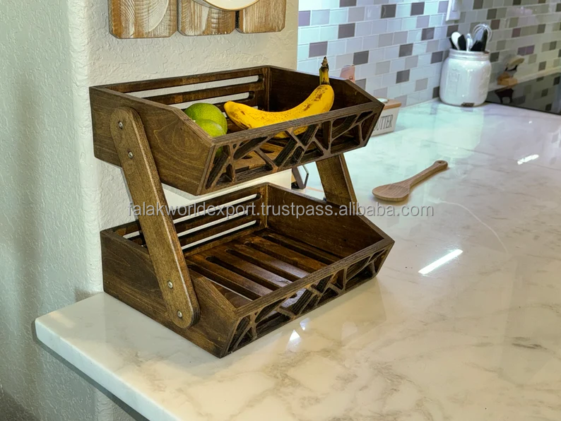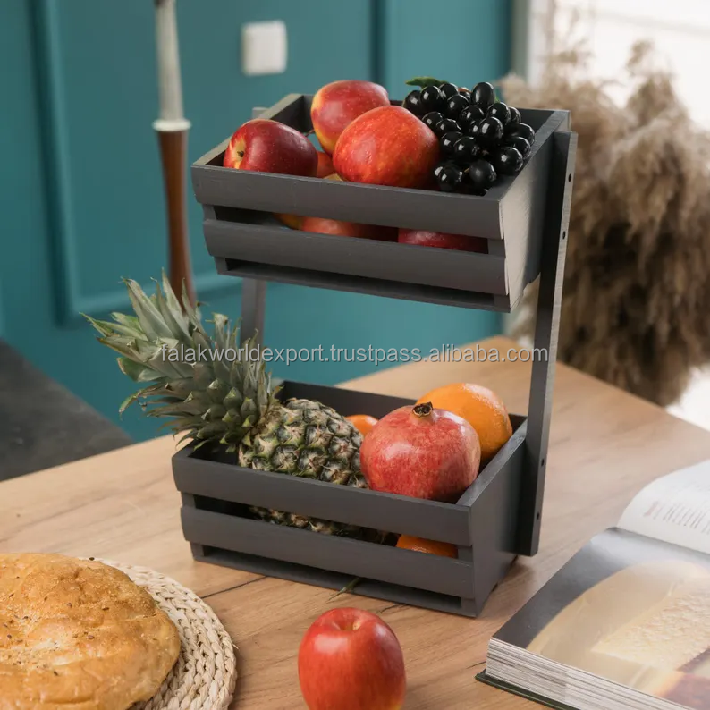 Beautifully Customizable Two-Layer Wooden Fruit and Vegetable Storage Basket for Food Use From Falak World Export