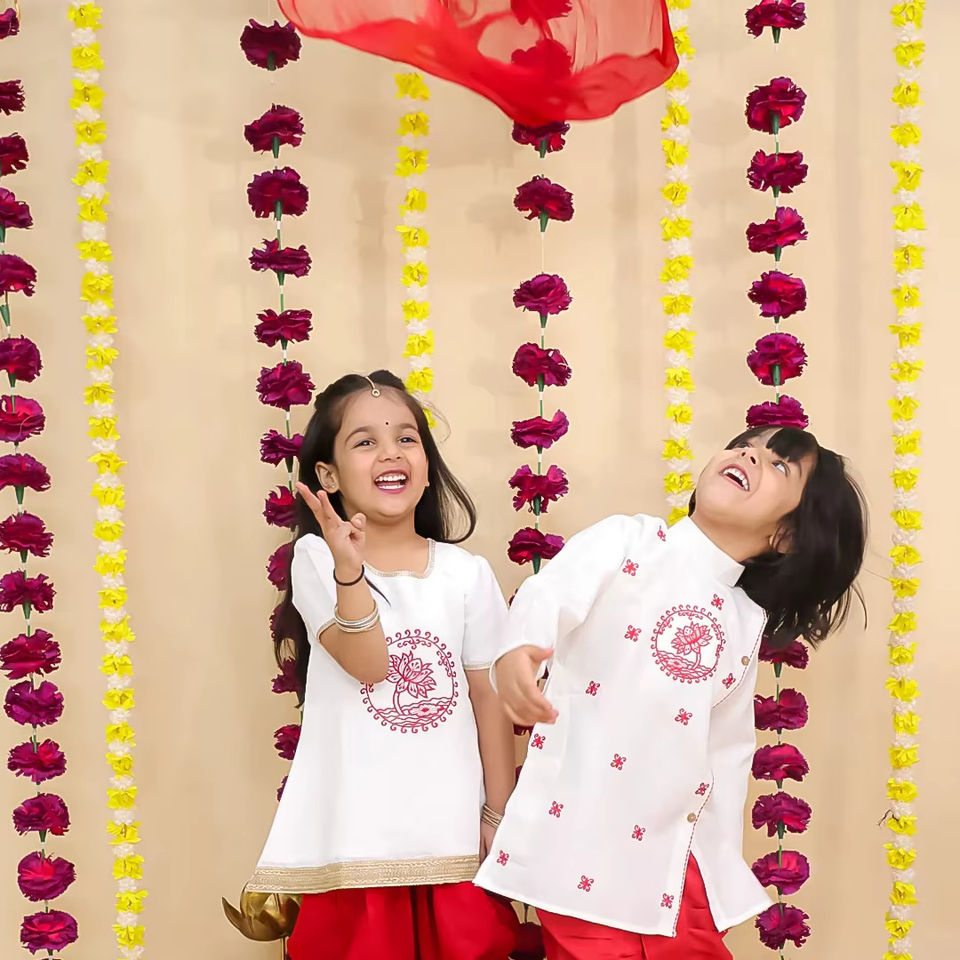Beautifully Designed Pakistani Kids Brother Sister Matching Dress Set with Embroidered Kurta for Festive Occasions