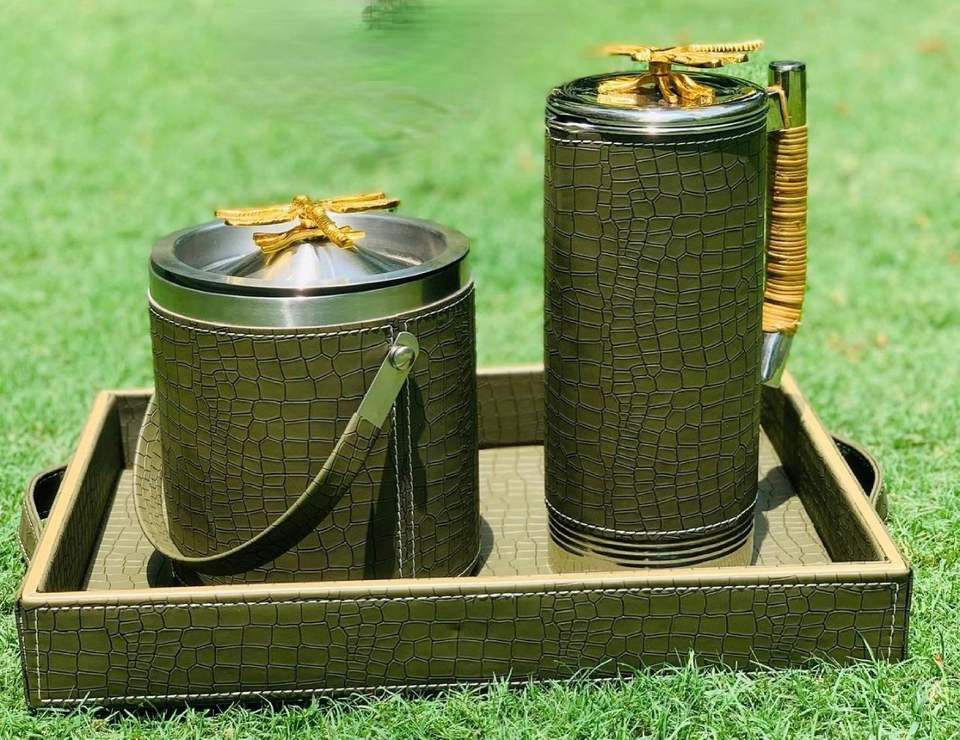 Beautifully Designed Rectangle bar Ice Box with wooden Tray and Water Jug Single-tier Durable Modern Kitchen Gadget for Parties