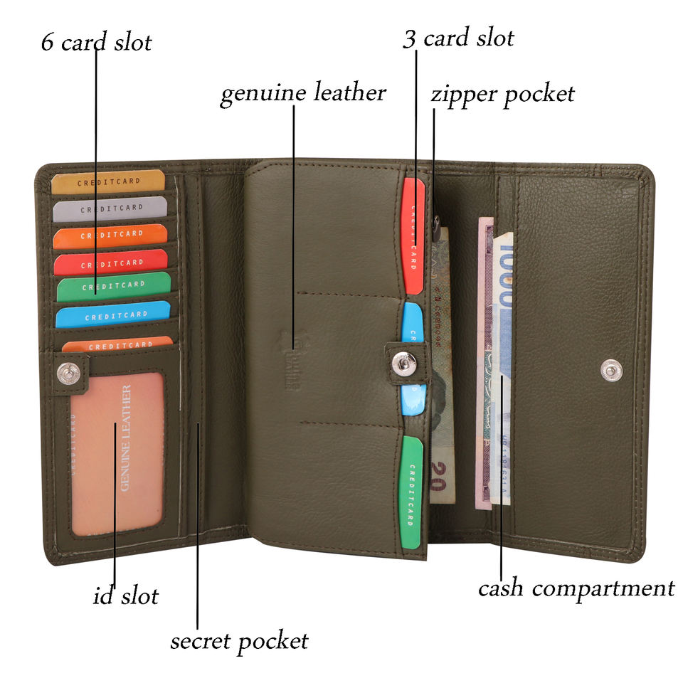 Beautifully Designed Women's Office Leather Wallet with RFID Feature Button Closure Type