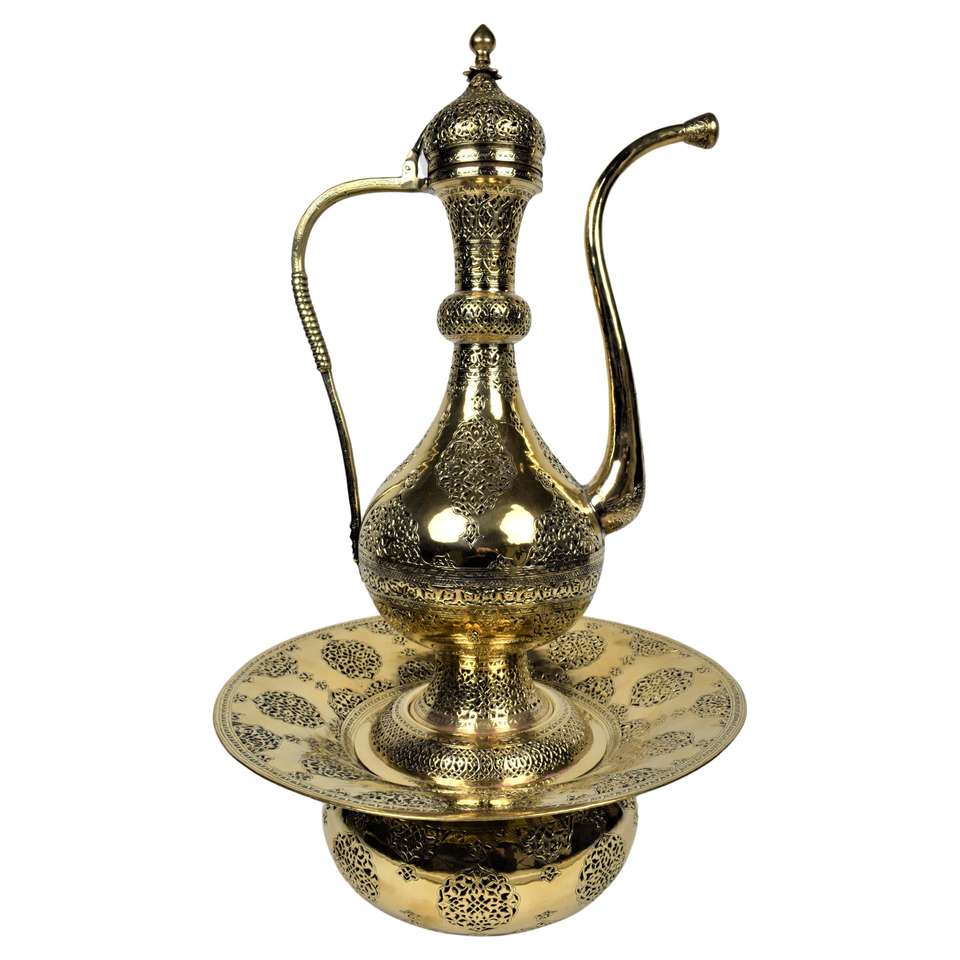 Beautifully Handcrafted Indian Brass Arabic Aftaba High Quality Metal Coffee Pot Elegant Engraving Design Utensil for Home
