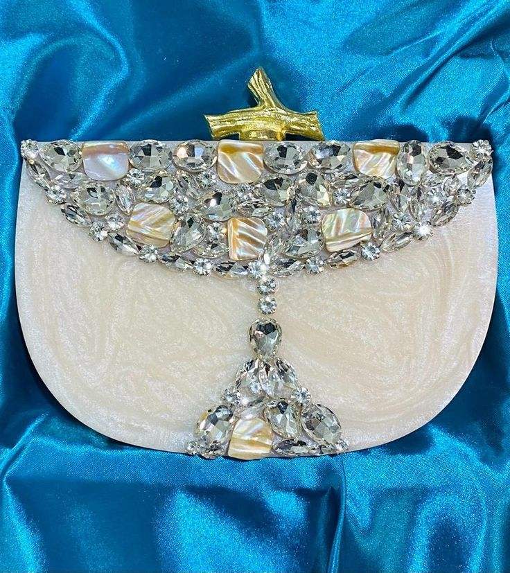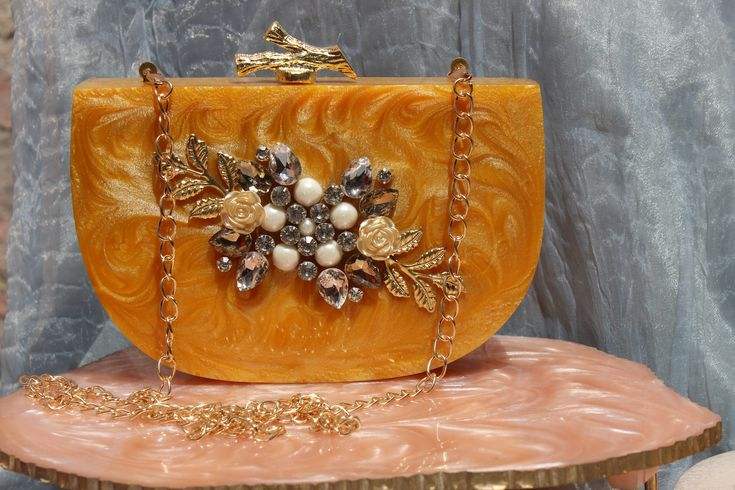 Beautifully Handmade Crafted Custom Women's Handbag Clutches Resin Purses Embellishments Cotton Rhinestone Button Resale Fashion