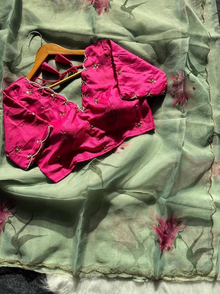 Beautifully Handworked & Stitched Silk Blouse Semi-Pure Organza Saree with Print Only for Indian & Pakistani Clothing