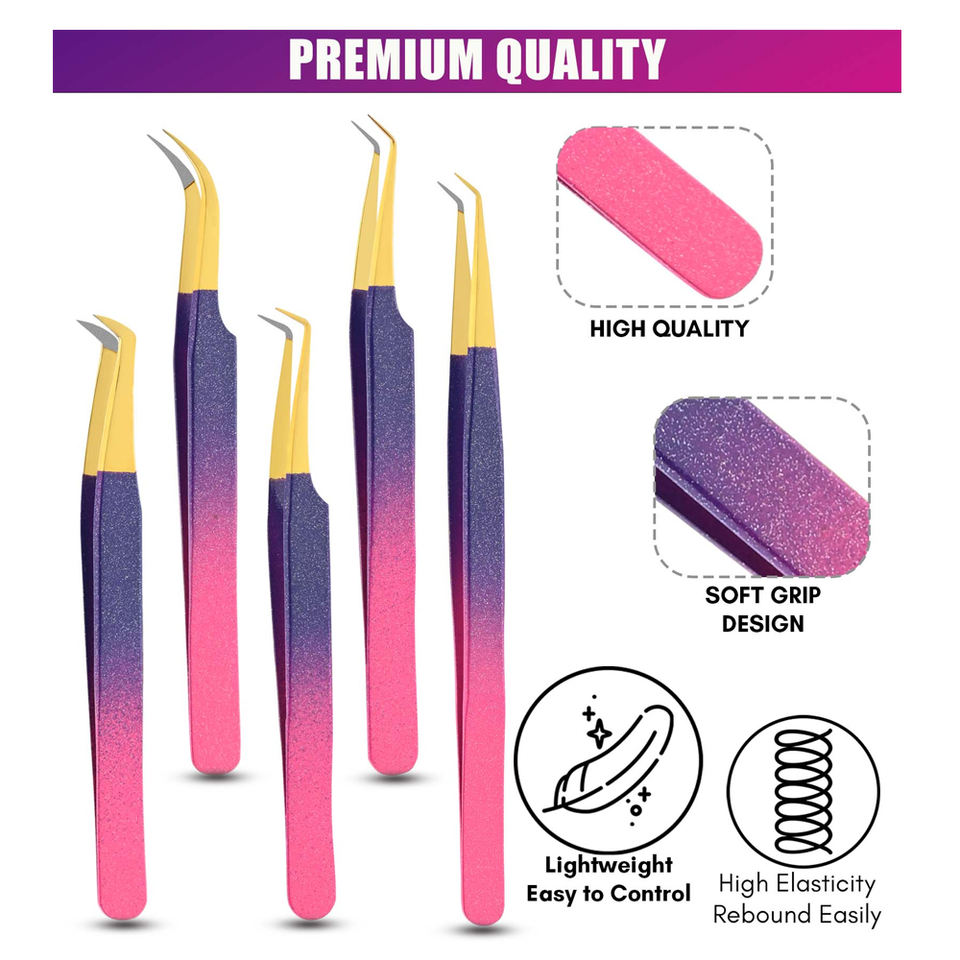 Beauty Instrument Ladies Custom Stainless False Eyelashes Tweezer Custom Logo Pink Fiber Tip Volume Lash Tweezers