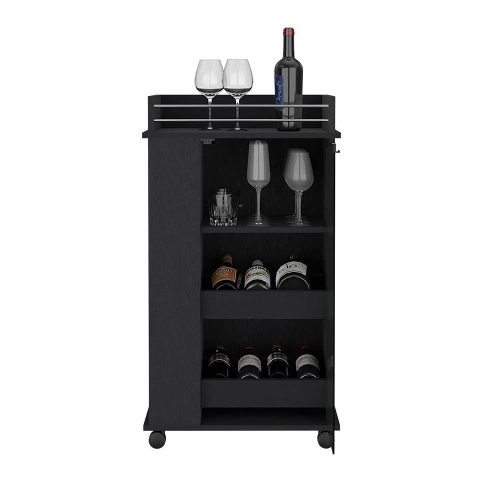 Beaver DB Bar Cart with Black Wengue Finish Two-Side Shelves Glass Door Upper Surface for Beverage Serving Sets
