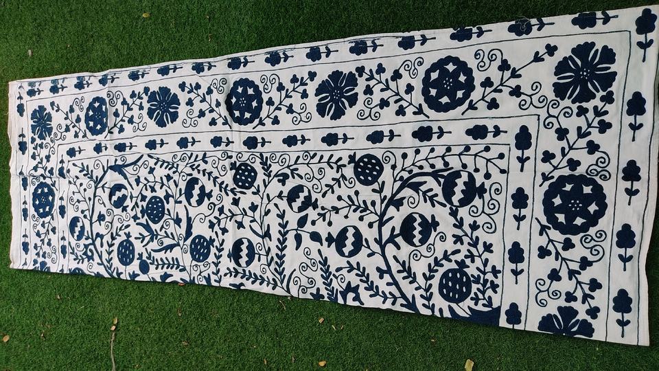 Keywords:Traditional Uzbek Suzani Embroidered Bed Sheet