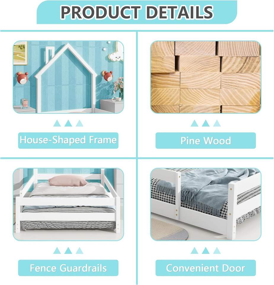 Bed for Girls Boys Twin Size Montessori Toddler Floor Bed Frame