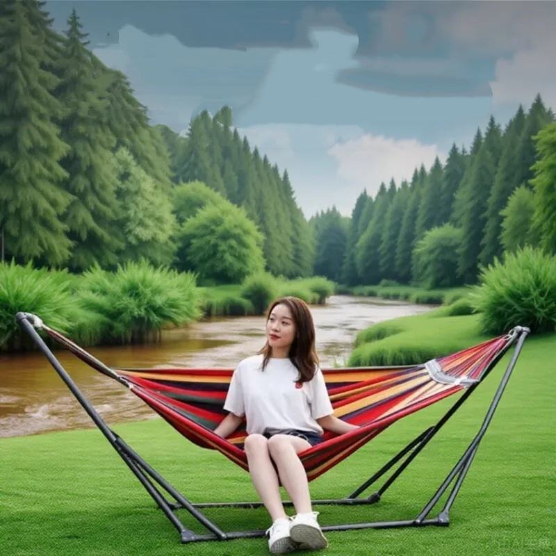 Bed frame with suspension support for adults folding iron frame outdoor imported support pole outdoor swing