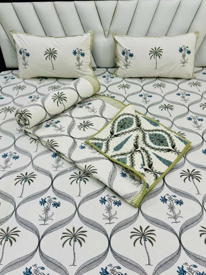Bedding Set Modern Style Quilted Reversable Double Bed Comforter with Jaipuri Printed Double Bed Kind Size Bedsheet set