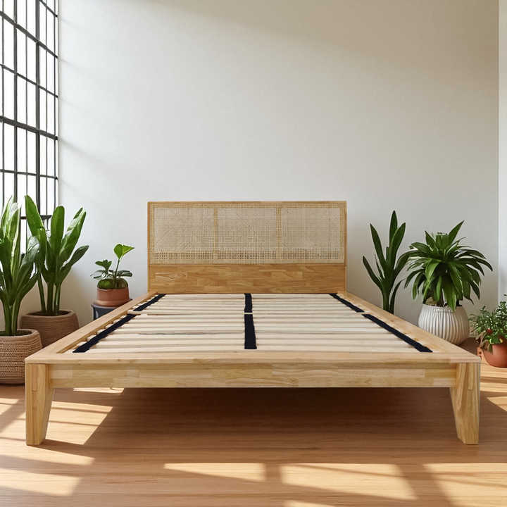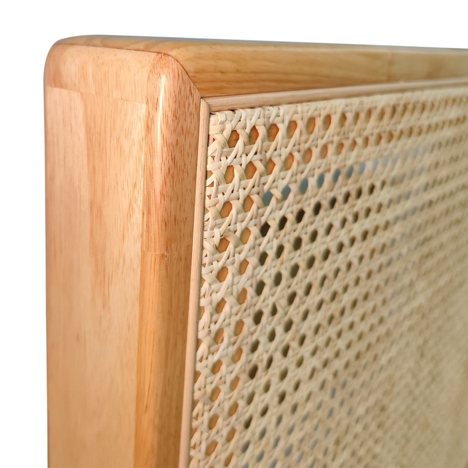 Bedroom Furniture Japanese Joinery Wooden Queen Size Bed Rattan Headboard Custom Color Finish Eco-Friendly Vietnam-Made OEM/ODM