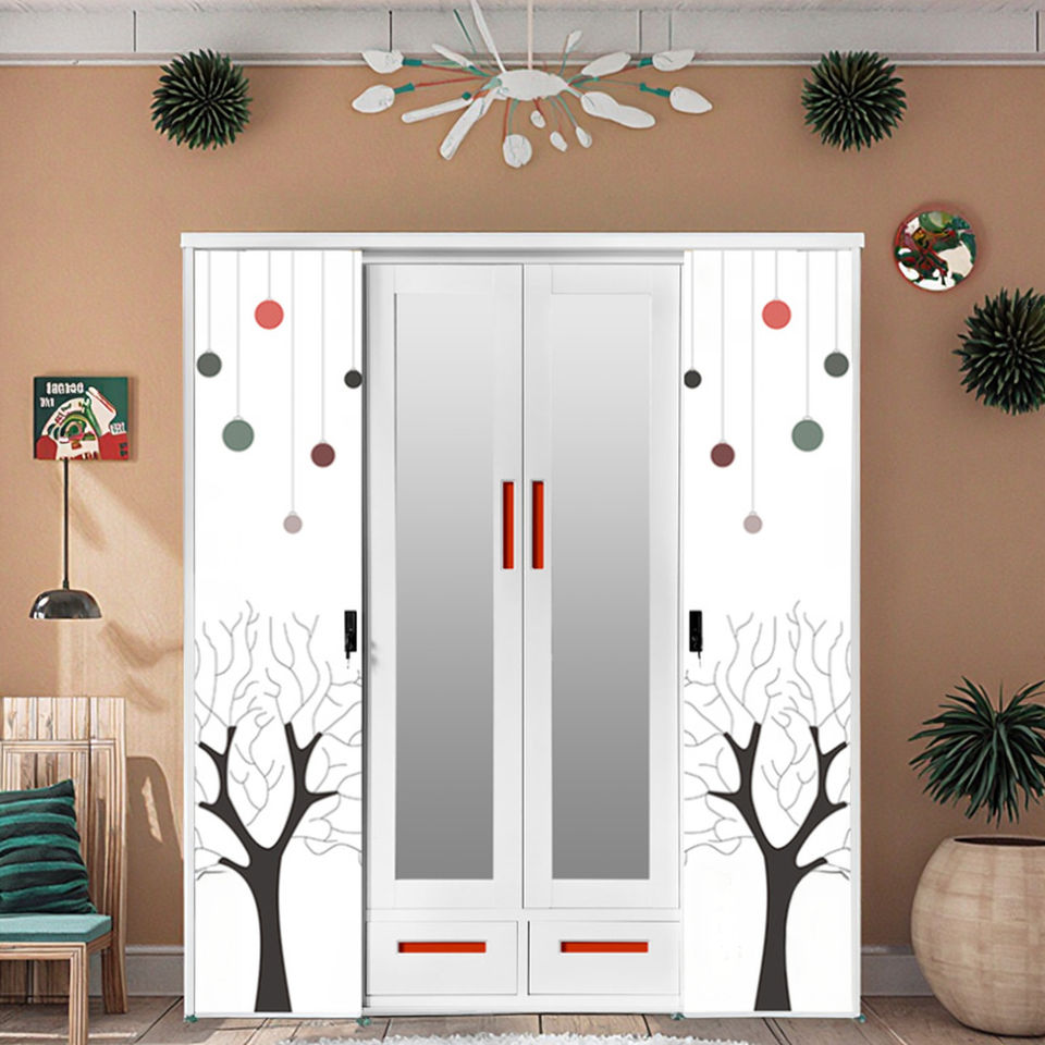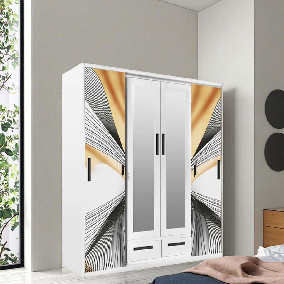 custom printing 4 door steel wardrobe sliding door