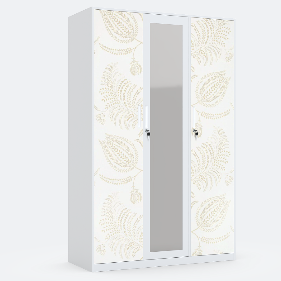 Bedroom Furniture Steel Wardrobe with Drawers Triple Swing Door Wardrobe Metal Printed Wardrobe