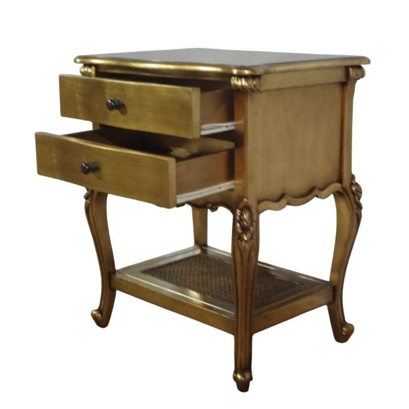 Bedroom Nightstands in Gold Leaf Wood and Rattan French Bedside Table Lamp Table with Drawers for Luxury Bedroom Sets Furniture