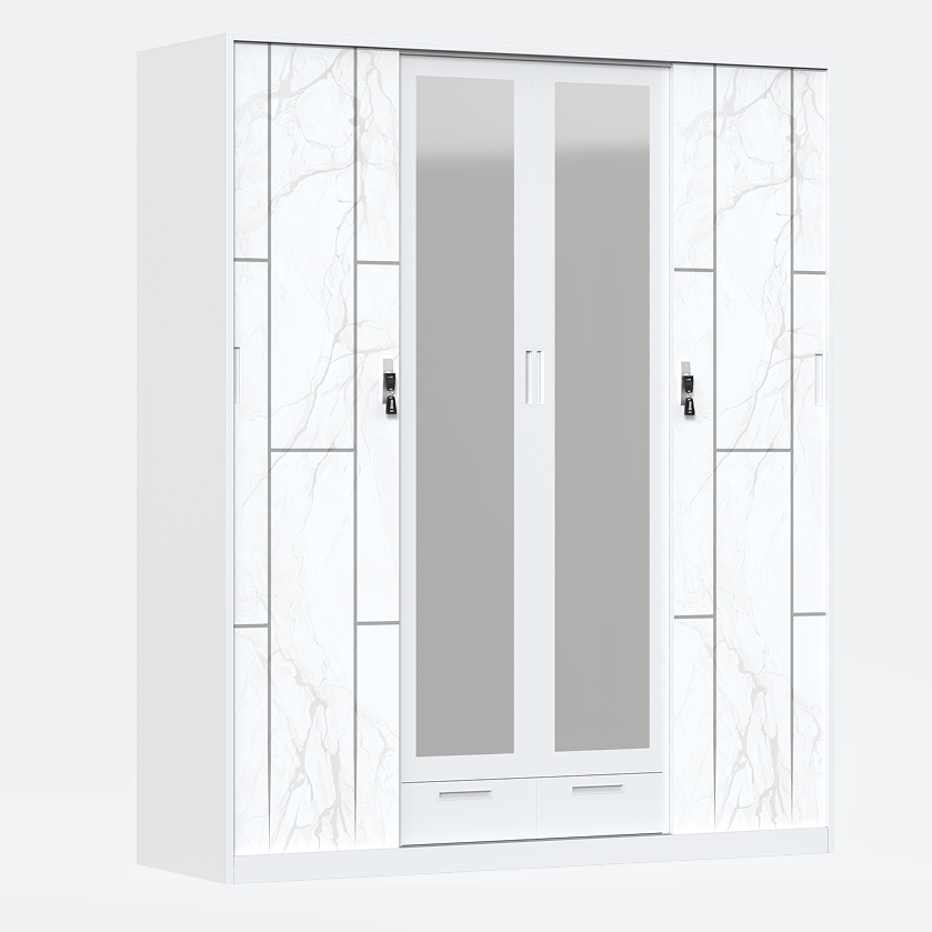 Bedroom Steel Cupboard Lockers Printed Wardrobe l Steel Closet Locker Metal Printed Closet Wardrobe 4 Door Cabinets With Mirror