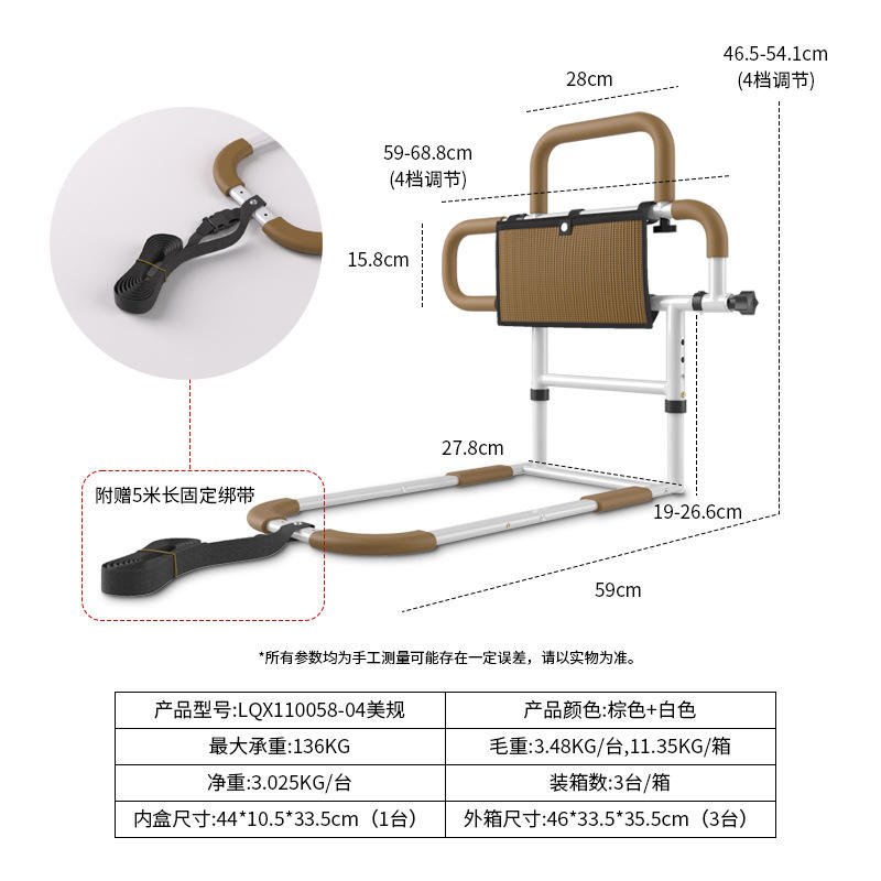 Bedside Grab Bars Foldable Bed Rails 59cm For Elderly Disabled Pregnant Safety Support With Adjustable Height And Binding Strap