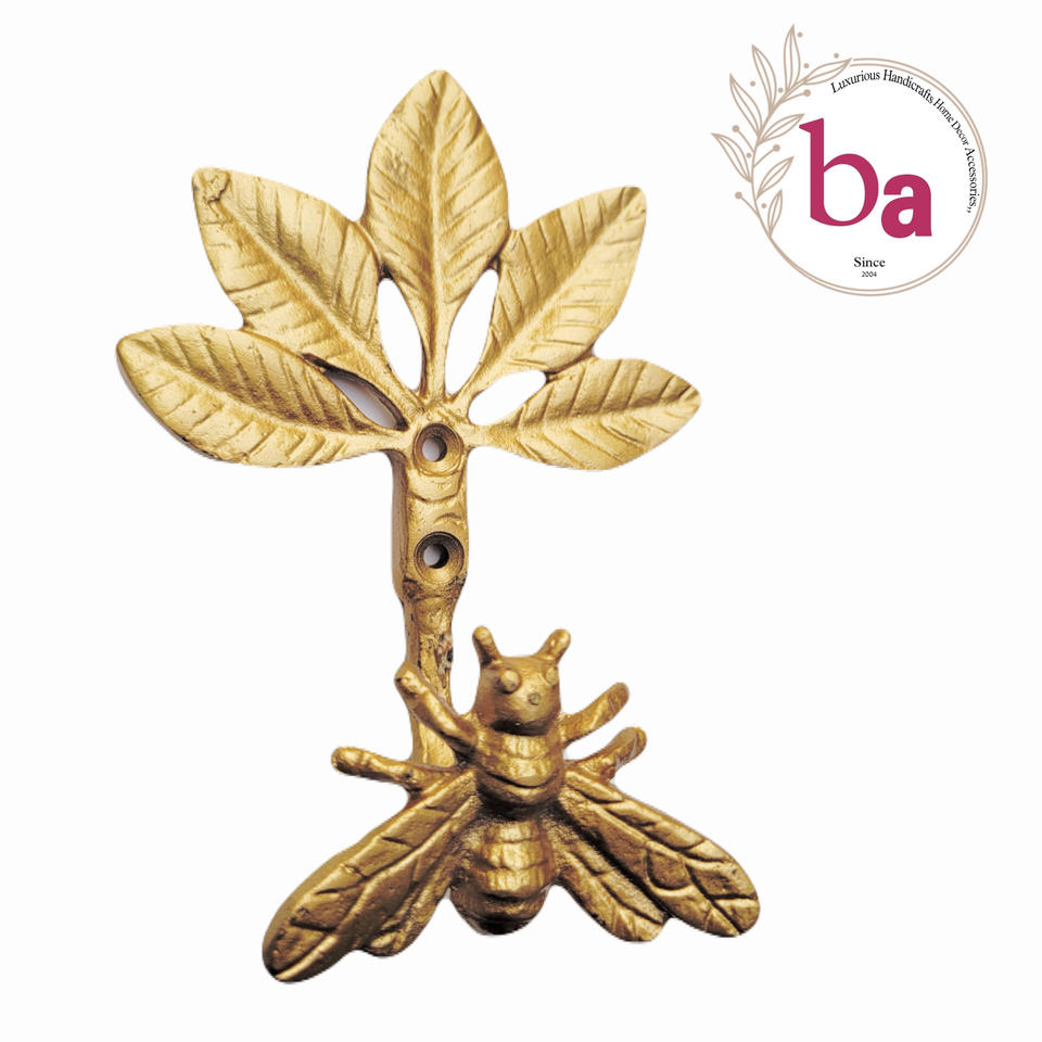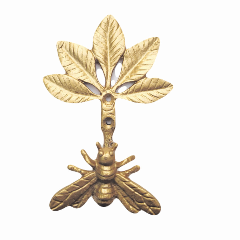 Vintage Bee-Themed Cast Iron Wall Mount Gold Coat Rack with Decorative Towel Holder Kids-Friendly Hooks & Rails for Bathroom