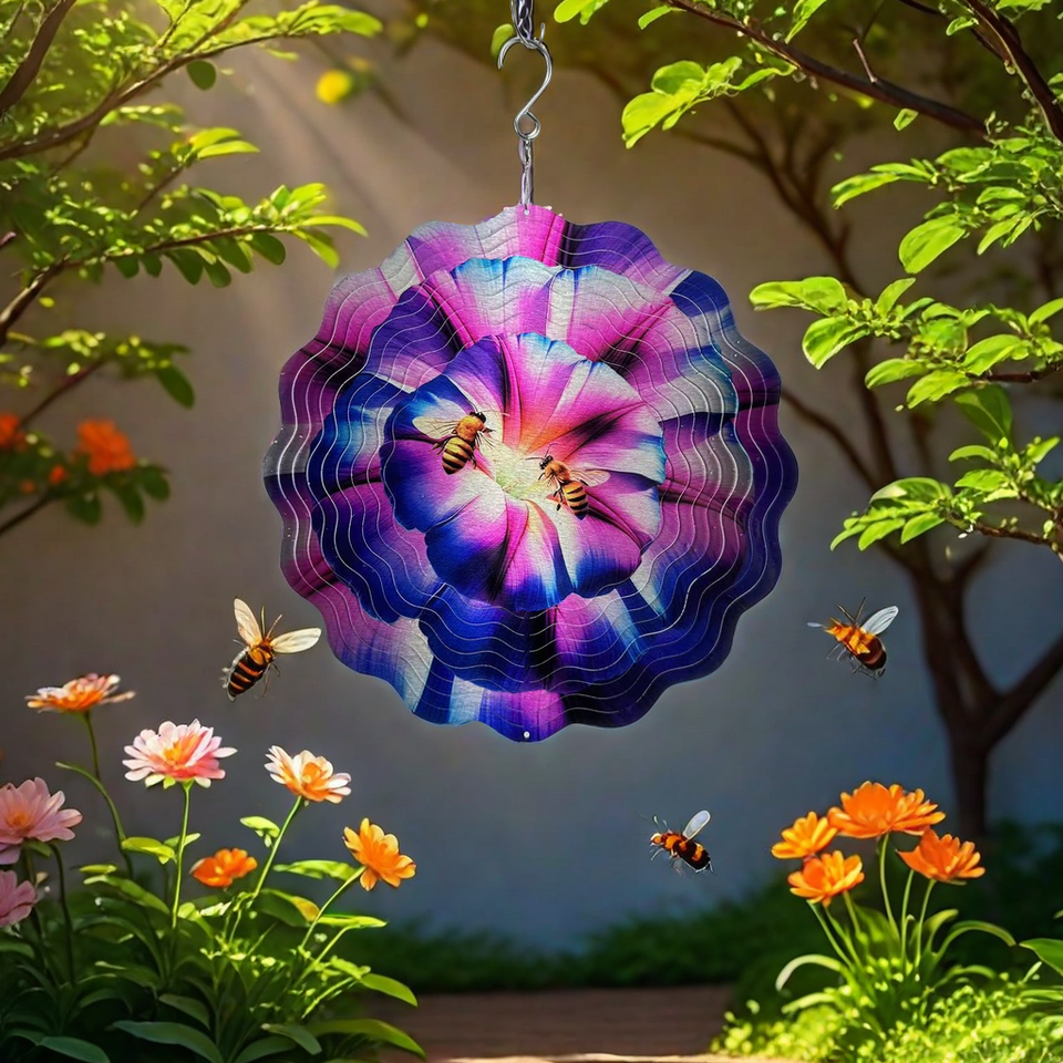 Bee and Flowers Wind Spinner Garden Ornament and Decorative Accessory