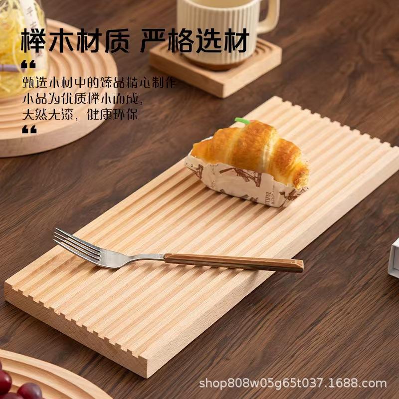 Beechwood Serving Trays Multi Size Solid Wood Ripple Design Natural Color For Tea Drinking And Dessert Plating