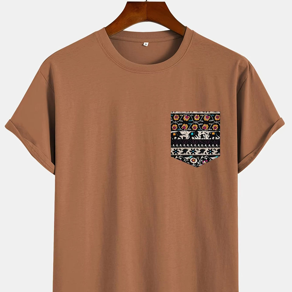 Beige 100% Cotton Pocket T-Shirt for Men Custom Printed Chest Pocket OEM Casual Summer Soft Fabric Breathable Regular Fit