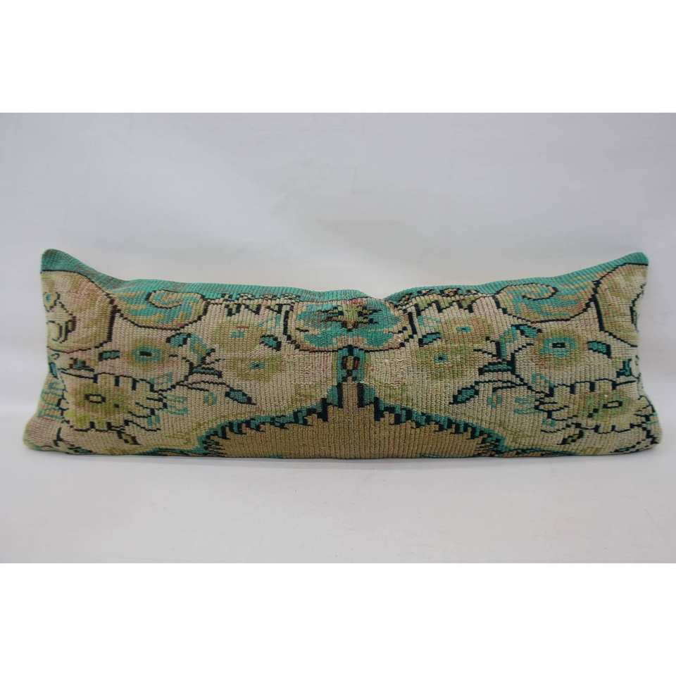 Beige 16x48 Inch Wool Kantha Pillow Vintage Pattern Paisley Patchwork Woven Technique