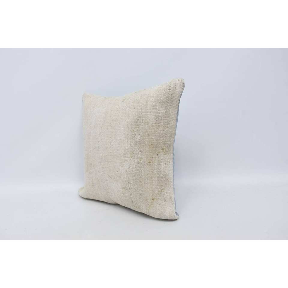Beige 18x18 Inch Ikat Wool Patchwork Pillow Rustic Design Woven Technique Portable Vintage Square Rectangle Shape for Home Use
