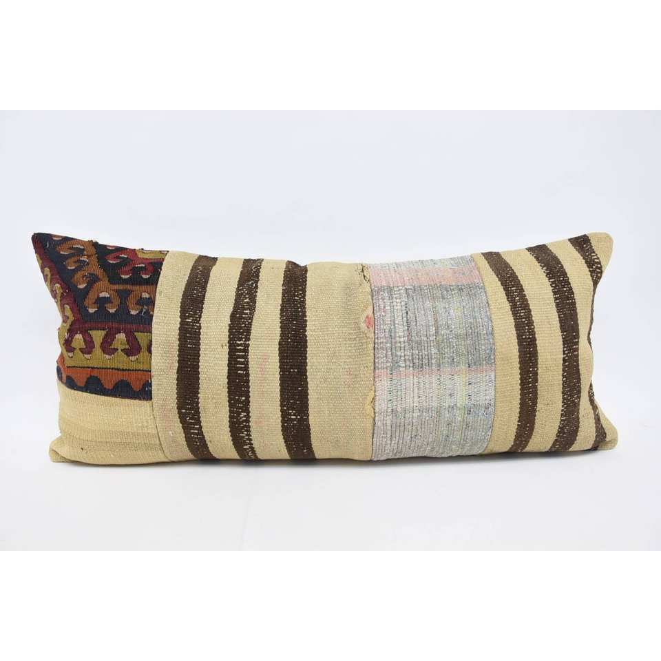 Beige 18x18 Wool Woven Kilim Patchwork Pillow Eco Friendly Non-Slip Luxury Fluffy Rectangle Decorative Accent Vintage Pattern