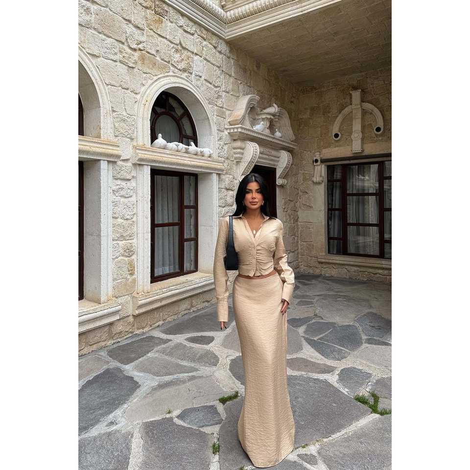 Beige Above Knee 2-Piece Set Short Office Outfit with Tops Length Short Two Pieces Design