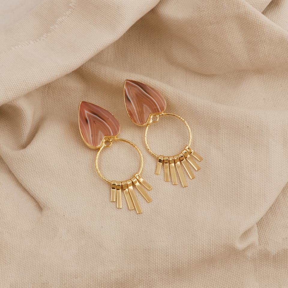 Beige Agate Slice Heart Shape Statement Earrings Natural Stone Texture Artistic Gold Plated Elegant Handmade Stud Earrings