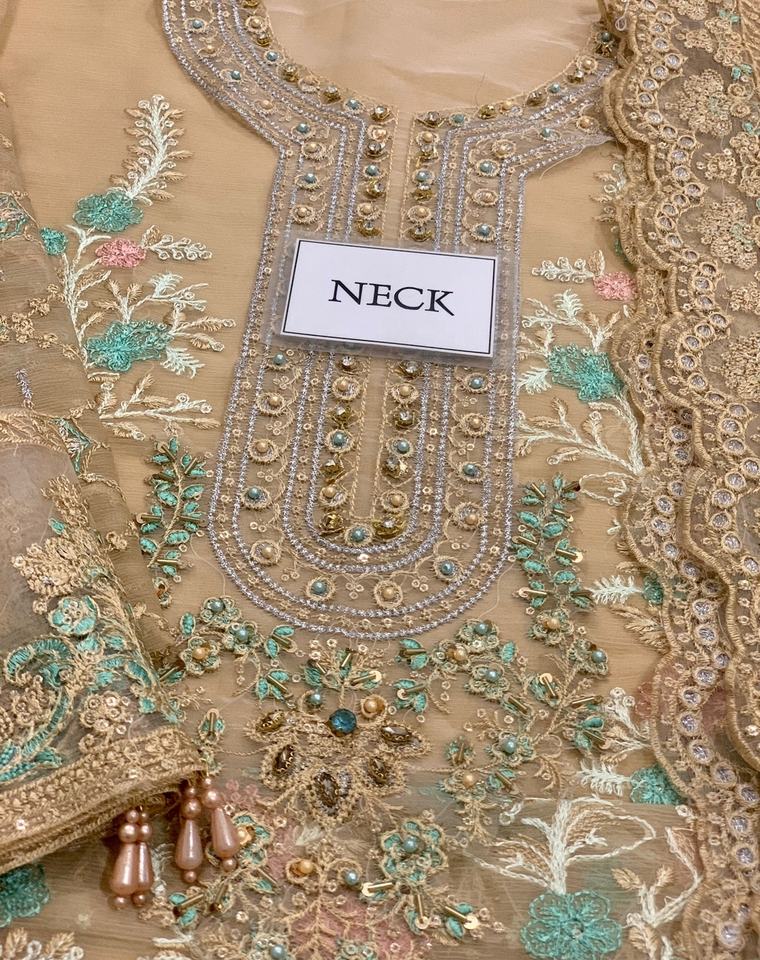2023 High Quality Beige Chiffon Silk Salwar Kameez Viscose Hand Work and Embroidery Pakistani/Indian Style Hot Selling Dress