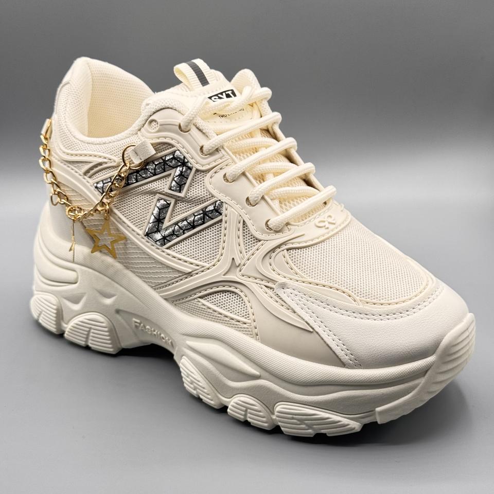 Beige Chunky Sneakers Women Fashion Casual Shoes