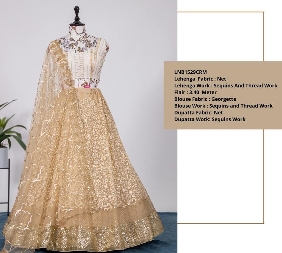 Beige Color Lehenga Choli in Net Material Embellished With All Over Sequins Embroidered Lehenga Choli
